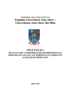 Domeniile de evaluare, criteriile de performanţă şi punctajul aferent fiecărui domeniu. Personalului didactic și didactic auxiliar. Procedura de evaluare a performanțelor angajaților reprezintă un punct de bază în managementul resurselor umane, indispensabilă pentru a determina gradul în care angajații își îndeplinesc sarcinile și responsabilitățile care le revin.